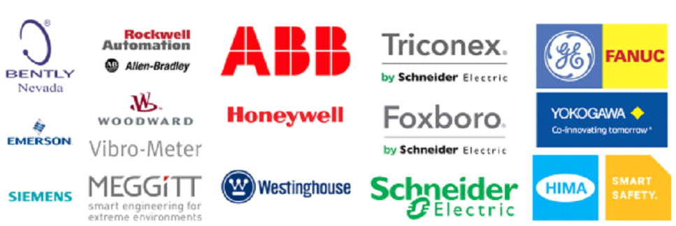 • Bentley Nevada • Rockwell outomation • Triconex by Schneider • Fanuc • Yokogawa • Foxboro • Schneider • Schneider electric • ABB • Honeywell • Westinghouse • Woodward vibometer • Allen Bradley • Meggitt • Emerson • Siemens • Vibro • Entek • Hima • B&R • XYCOM • KUKA • ROSEMOUNT • Yaskawa •General Electric (GE) • Banchmann • Woodhead • PILZ • HIRSCHMANN • VIPA • Reliance